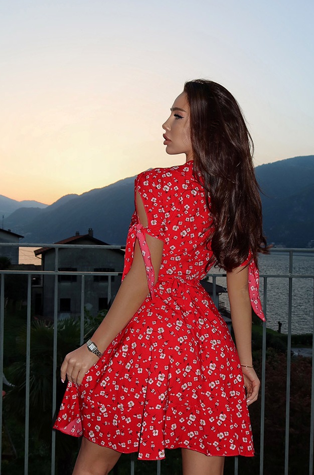 The Celeste Mini in Red Floral Print embodies playful romance and chic confidence. The bold red base is balanced by delicate white florals, while the wrap silhouette enhances curves with ease. Its lightweight staple fabric makes it the perfect dress for warm days, offering freedom of movement and effortless breathability.